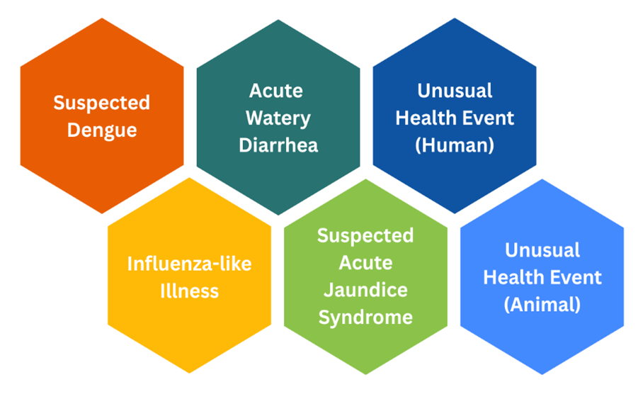 Through the joint efforts of BDRCS, IEDCR, and partners, CBS is now operational in these areas using real-time data collection through a customized mobile application. The system currently supports early detection of six priority events: influenza-like illness, acute watery diarrhea, acute jaundice syndrome, suspected dengue fever, and any unusual health events in humans and animals.